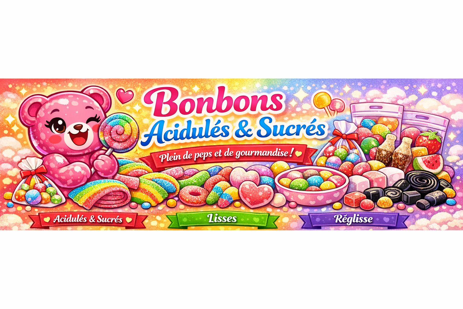Bienvenue dans notre sélection de bonbons acidulés & sucrés, la catégorie préférée des amateurs de sensations fortes et de douceurs fruitées. Ici, tu trouveras des bonbons qui piquent, qui croquent, qui fondent, et surtout… qui donnent le sourire.