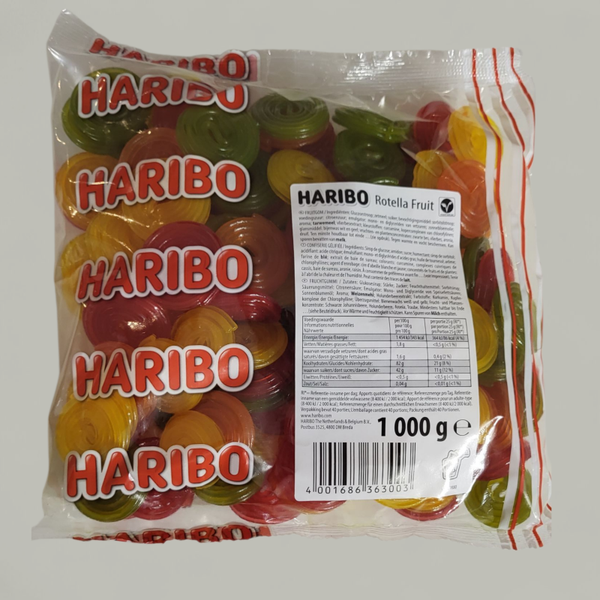 Savourez la magie des bonbons vegan HARIBO Rotella fruit ! Un festival de saveurs fruitées avec une texture fondante, parfaits pour toutes vos occasions. Offrez-vous une douceur éthique et délicieuse !