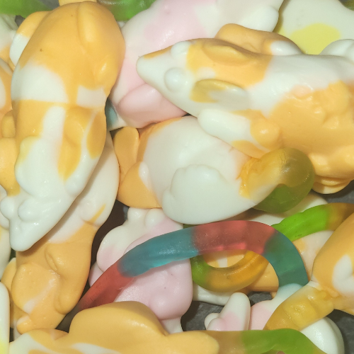 Ce bonbon Trolli mesure 15cm de long ! Ce n'est plus une souris, c'est un rat ! Humour bon enfant, espièglerie et compétence sont les marques de fabrique de Trolli. Mimi est le nom qu'il a donné à son bonbon souris car elle est toute mignonne, toute colorée et surtout très appétissante ! Son corps dodu est en pâte de guimauve à la vanille et sa queue en gélatine à la framboise, mangue ou fraise.
