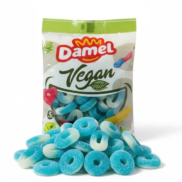 Plongez dans un tourbillon de fraîcheur avec les Anneaux Bleus et Blancs Sucrés Damel, de délicieux bonbons gélifiés au look bicolore irrésistible. Leur texture tendre, associée à un enrobage de sucre scintillant, offre une expérience gourmande à la fois douce, acidulée et ultra réconfortante. Leur couleur éclatante et leur forme iconique en font un bonbon aussi joli que délicieux, parfait pour ajouter une touche de fun à chaque pause sucrée. Entièrement vegan, ils conviennent à tous ceux qui aiment les bonbons lumineux, joyeux et délicieusement gourmands.