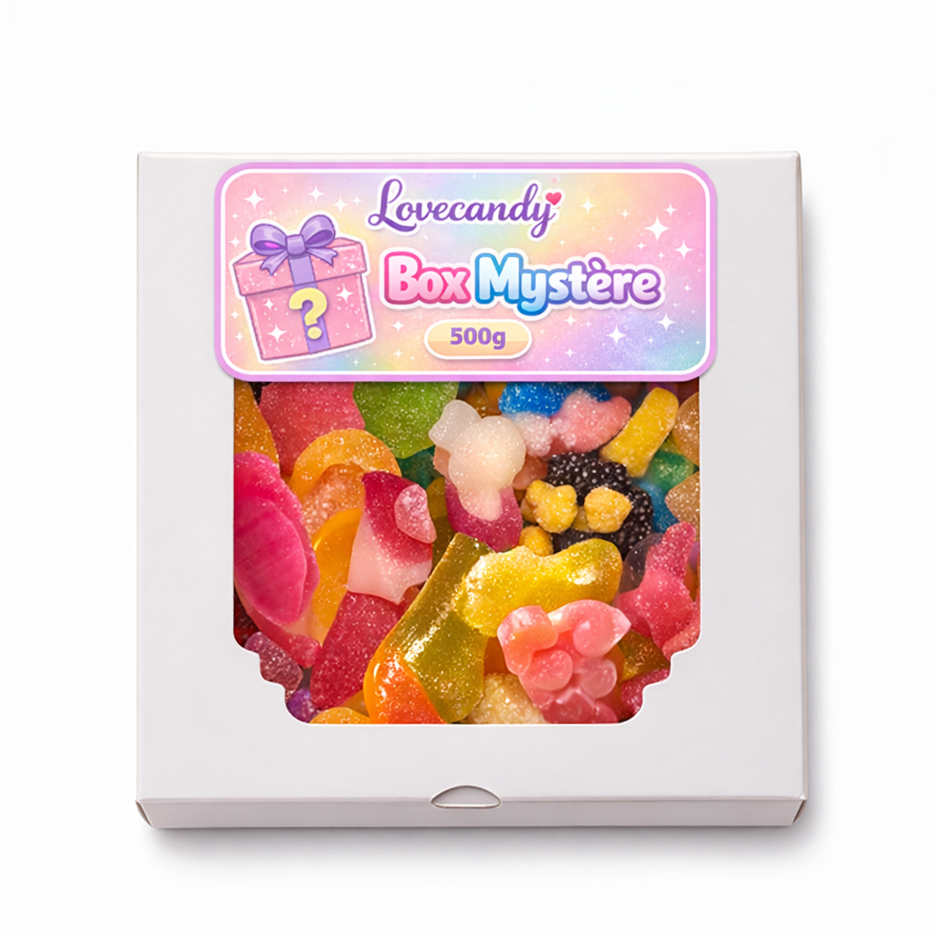 Ingrédients : Sirop de glucose, sucre, eau, gélatine de boeuf, amidon modifié de pomme de terre, acidifiants : E330, E270, E296, arôme, correcteur d'acidité : malate de sodium, arômes : colorants E129, E163, E160a